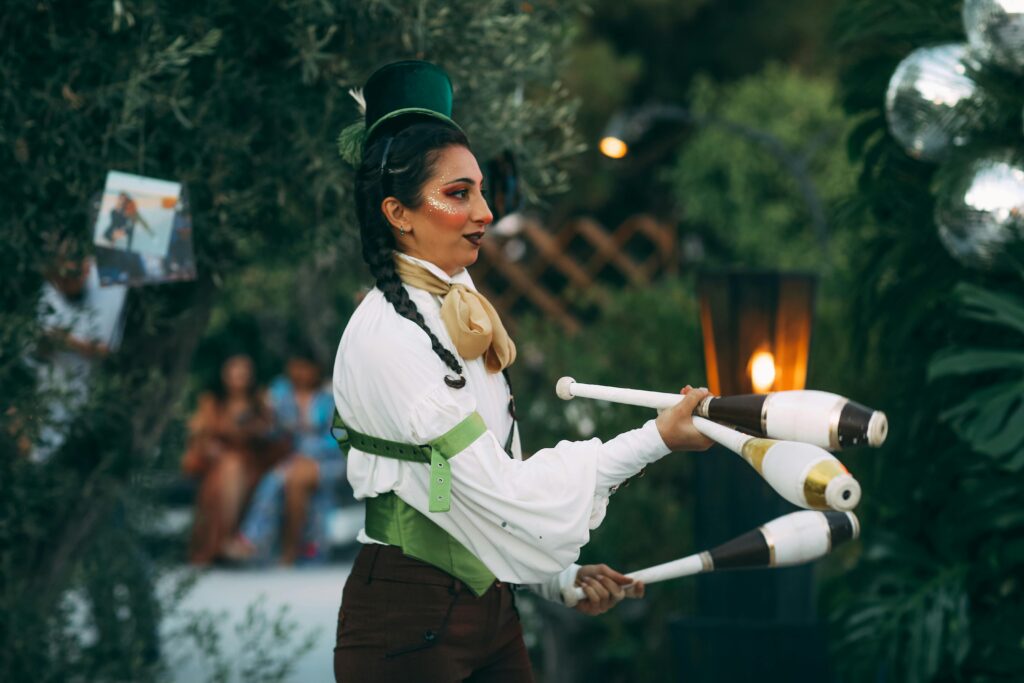 Juggling Acts:Skilled jugglers showcase impressive coordination, balance, and timing with colorful props and dynamic routines. Juggling acts bring energy, rhythm, and visual excitement to the stage.